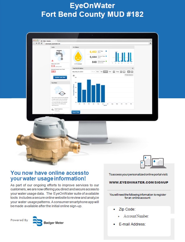 Fort Bend County Municipal Utility District No. 182 has instituted Stage 1 of its Drought Contingency Plan. Your cooperation is imperative to provide adequate water and water pressure to the community.